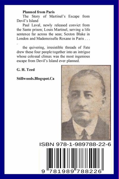 Planned from Paris The Story of Martinel's Escape from Devil's Island Paul Laval, newly released convict from the Sante prison; Louis Martinel, serving a life sentence far across the seas; Sexton Blake in London and Mademoiselle Roxane in Paris . . . . the quivering, irresistible threads of Fate drew these four people together into an intrigue whose colossal climax was the most ingenious escape from Devil's Island ever planned.
