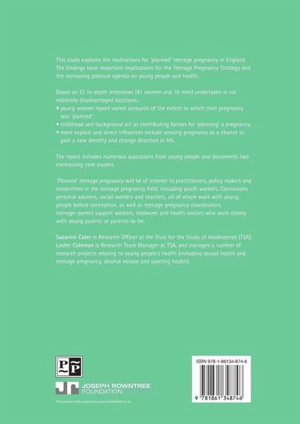 This in-depth study explores the motivations for 'planned' teenage pregnancy in England. The findings have important implications for the Teenage Pregnancy Strategy and the increasing political agenda on young people and health. A free pdf version of this report is available online at www.jrf.org.uk