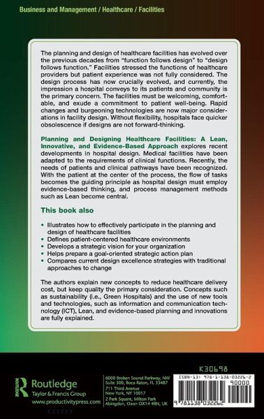 The book explains new concepts to reduce healthcare delivery cost yet keep quality. Concepts such as sustainability (i.e., Green Hospitals) and the use of new tools and technologies such as information and communication technology (ICT), Lean, and evidence-based planning and innovations are fully explained.