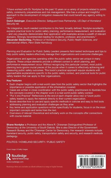Planning and Evaluation for Public Safety Leaders presents field-tested techniques and tips to help public safety leaders effectively manage their organizations and overcome challenges. Organizations and agencies operating within the public safety sector are unique in many respects. These unique elements provide a different context in which planning, and performance measurement occur. Without recognizing this particular context, most public planning texts ignore crucial pieces of the puzzle when it comes to effectively achieving and measuring public safety outcomes. This book's practical approach equips students with approachable explanations specific to the public safety context, and practical tools for public safety leaders that can apply to their organizations. Key Features ¿ Each chapter begins with a real-world case from the public safety sector that highlights the importance or possible application of the information covered. ¿ Cases are written in close coordination with the public safety practitioners to illustrate how the concepts covered in the chapter work in a real-world public safety context. ¿ "Put it into Practice" Reflections at the end of each chapter allow new or future public safety leaders to apply the material directly to their current organization. ¿ Boxes describe how to use and apply specific methods in a concise and easy to find tools addressing planning and evaluation challenges as they arise ¿ Key terms and application questions written specifically for students, focus in on the most important concepts and terms from the text. ¿ Overviews of relevant theoretical and scholarly work on the concepts offer connections with course material.