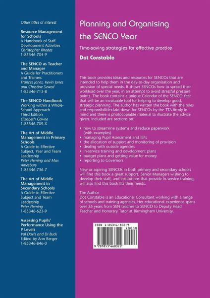 Managing Pupil Assessment and IEPs, the allocation of support and monitoring of provision, dealing with outside agencies, in-service training and development plans, budget plans and getting value for money, and reporting to Governors. New or aspiring SENCOs in both primary and secondary schools will find this book a great support. Senior managers wishing to develop their staff, and institutions that provide in-service training, will also find this book fits their needs.