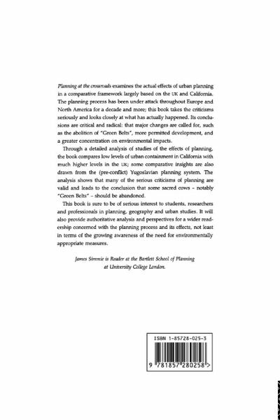 Through a detailed analysis of studies of the effects of planning, comparing low levels of urban containment in California with much higher levels in the UK. Some comparative insights are also drawn from the (pre-conflict) Yugoslavian planning system. The analysis shows that many of the serious criticisms of planning are valid and leads to the conclusion that some sacred cows - notably "green belts" - should be abandoned. This distinctive text is of use to students, researchers and professionals in planning, geography and urban studies.