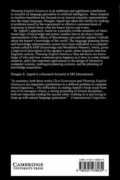 This book is an investigation into the problems of generating natural language utterances to satisfy specific goals the speaker has in mind. It is thus an ambitious and significant contribution to research on language generation in artificial intelligence, which has previously concentrated in the main on the problem of translation from an internal semantic representation into the target language. Dr. Appelt's approach, based on a possible-worlds semantics of an intensional logic of knowledge and action, enables him to develop a formal representation of the effects of illocutionary acts and the speaker's beliefs about the hearer's knowledge of the world. The theory is embodied and illustrated in a computer system, KAMP (Knowledge and Modalities Planner), described in the book.