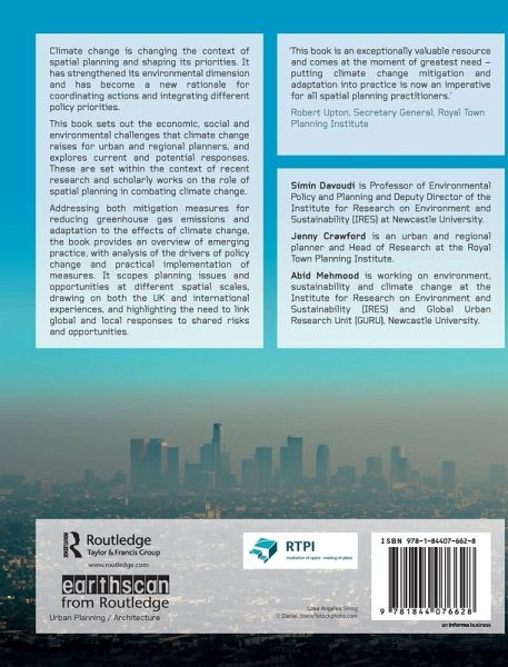 Climate change is changing the context of spatial planning and shaping its priorities. It has strengthened its environmental dimension and has become a new rationale for coordinating actions and integrating different policy priorities. This book sets out the economic, social and environmental challenges that climate change raises for urban and regional planners and explores current and potential responses. These are set within the context of recent research and scholarly works on the role of spatial planning in combating climate change. Addressing both mitigation measures for reducing greenhouse gas emissions and adaptation to the effects of climate change, the book provides an overview of emerging practice, with analysis of the drivers of policy change and practical implementation of measures. It scopes planning issues and opportunities at different spatial scales, drawing on both the UK and international experiences and highlighting the need to link global and local responses to shared risks and opportunities.