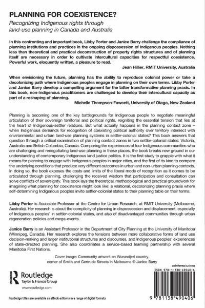 Planning is becoming one of the key battlegrounds for Indigenous people to negotiate meaningful articulation of their sovereign territorial and political rights, reigniting the essential tension that lies at the heart of Indigenous-settler relations. But what actually happens in the planning contact zone - when Indigenous demands for recognition of coexisting political authority over territory intersect with environmental and urban land-use planning systems in settler-colonial states? This book answers that question through a critical examination of planning contact zones in two settler-colonial states: Victoria, Australia and British Columbia, Canada. Comparing the experiences of four Indigenous communities who are challenging and renegotiating land-use planning in these places, the book breaks new ground in our understanding of contemporary Indigenous land justice politics. It is the first study to grapple with what it means for planning to engage with Indigenous peoples in major cities, and the first of its kind to compare the underlying conditions that produce very different outcomes in urban and non-urban planning contexts. In doing so, the book exposes the costs and limits of the liberal mode of recognition as it comes to be articulated through planning, challenging the received wisdom that participation and consultation can solve conflicts of sovereignty. This book lays the theoretical, methodological and practical groundwork for imagining what planning for coexistence might look like: a relational, decolonizing planning praxis where self-determining Indigenous peoples invite settler-colonial states to their planning table on their terms.
