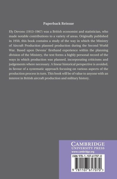 Ely Devons (1913-67) was a British economist and statistician who made notable contributions to a variety of areas. Originally published in 1950, this book contains a study of the way in which the Ministry of Aircraft Production planned production during the Second World War. Based upon Devons' firsthand experience within the planning division of the Ministry, the text forms a highly personal record of the ways in which production was planned, incorporating criticisms and judgements where necessary. A linear historical perspective is avoided, in favour of a systematic approach focusing on various aspects of the production process in turn. This book will be of value to anyone with an interest in British aircraft production and military history.