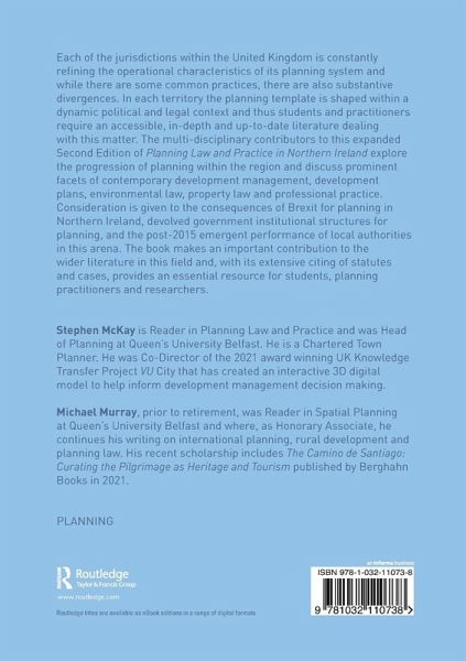 Stephen McKay is Reader in Planning Law and Practice and was Head of Planning at Queen's University Belfast. He is a Chartered Town Planner. He was Co-Director of the 2021 award winning UK Knowledge Transfer Project VU City that has created an interactive 3D digital model to help inform development management decision making. Michael Murray, prior to retirement, was Reader in Spatial Planning at Queen's University Belfast and where, as Honorary Associate, he continues his writing on international planning, rural development and planning law. His recent scholarship includes The Camino de Santiago: Curating the Pilgrimage as Heritage and Tourism published by Berghahn Books in 2021.