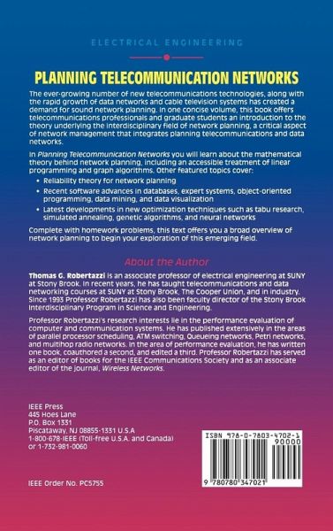 The ever-growing number of new telecommunications technologies, along with the rapid growth of data networks and cable television systems has created a demand for sound network planning. In one concise volume, this book offers telecommunications professionals and graduate students an introduction to the theory underlying the interdisciplinary field of network planning, a critical aspect of network management that integrates planning telecommunications and data networks. In Planning Telecommunication Networks you will learn about the mathematical theory behind network planning, including an accessible treatment of linear programming and graph algorithms. Other featured topics cover: * Reliability theory for network planning * Recent software advances in databases, expert systems, object-oriented programming, data mining, and data visualization * Latest developments in new optimization techniques such as tabu research, simulated annealing, genetic algorithms, and neural networks Complete with homework problems, this text offers you a broad overview of network planning to begin your exploration of this emerging field.