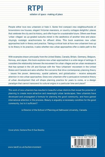 An examination of new urban approaches both in theory and in practice. Taking a critical look at how new urbanism has lived up to its ideals, the author asks whether new urban approaches offer a viable path to creating good communities. With examples drawn principally from North America, Europe and Japan, Planning the Good Community explores new urban approaches in a wide range of settings. It compares the movement for urban renaissance in Europe with the New Urbanism of the United States and Canada, and asks whether the concerns that drive today's planning theory - issues like power, democracy, spatial patterns and globalisation- receive adequate attention in new urban approaches. The issue of aesthetics is also raised, as the author questions whether communities must be more than just attractive in order to be good. With the benefit of twenty years' hindsight and a world-wide perspective, this book offers the reader unparalleled insight as well as a rigorous and considered critical analysis.