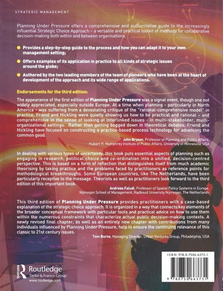 Offers managers, planners, consultants and students a comprehensive guide to the Strategic Choice Approach. Starting from basic principles, this book uses diagrams and explanations to demonstrate practical ways of approaching daunting decision problems; of devising possible ways forward; and of working effectively towards agreed courses of action.