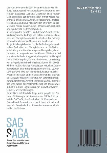 Die Planspielmethode ist in vielen Kontexten wie Bildung, Beratung und Forschung fest verankert und insofern ein etabliertes "Denkmal". Dennoch ist sie nicht in Stein gemeißelt, sondern muss sich immer wieder neu erfinden. Themen wie Agilität, Digitalisierung, Interprofessionalität und neue Arbeitswelten erfordern es, die Methode neu zu denken, neue Formate auszuprobieren und den Einsatz weiterzuentwickeln. Im vorliegenden zwölften Band der ZMS-Schriftenreihe sind ausgewählte Beiträge von Referierenden des Europäischen Planspielforums 2019 enthalten. Die Beiträge bilden eine Vielzahl an Themen und Inhalten ab. So geht es beispielsweise um die Bedeutung der qualitativen Evaluation von Planspielen und um die Weiterentwicklung von Unterhaltungs- zu Planspielen, die zu Lernzwecken eingesetzt werden können. Weitere Artikel umreißen die Bedeutung von Rollenspielen im Planspiel sowie die Konzeption, Kommunikation und Umsetzung von erfolgreichen Wirtschaftssimulationen. Mit GLOBE wird ein multinationales Planspiel zur virtuellen Zusammenarbeit in einer Krisensituation vorgestellt, LEGO® Serious Play® wird zur Themenfindung studentischer Arbeiten eingesetzt und ein Beitrag behandelt ein Planspiel, das zur Klausurvorbereitung in Veranstaltungen zum Qualitätsmanagement entwickelt wurde. Beschrieben wird zudem die Implementierung von Themen wie Industrie 4.0 und Digitalisierung in innovationsvermittelnde Lehrveranstaltungen. Dieser Band entstand als Kooperationsprojekt des Zentrums für Managementsimulation der DHBW Stuttgart mit der SAGSAGA, der Gesellschaft für Planspiele in Deutschland, Österreich und der Schweiz e.V. - einmal mehr ein Beweis der fruchtbaren Zusammenarbeit der beiden Institutionen.