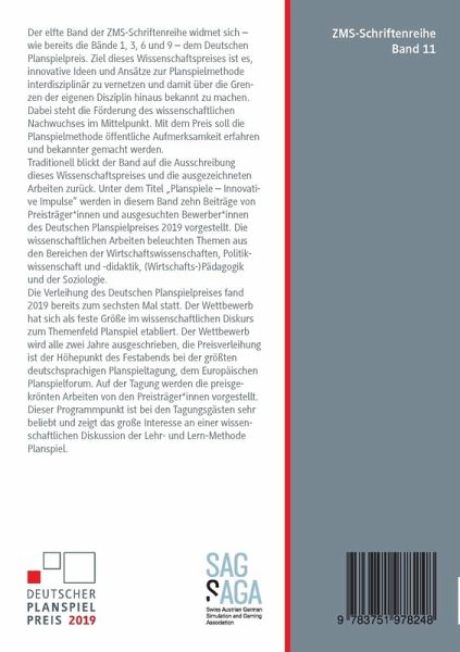 Der elfte Band der ZMS-Schriftenreihe widmet sich - wie bereits die Bände 1, 3, 6 und 9 - dem Deutschen Planspielpreis. Ziel dieses Wissenschaftspreises ist es, innovative Ideen und Ansätze zur Planspielmethode interdisziplinär zu vernetzen und damit über die Grenzen der eigenen Disziplin hinaus bekannt zu machen. Dabei steht die Förderung des wissenschaftlichen Nachwuchses im Mittelpunkt. Mit dem Preis soll die Planspielmethode öffentliche Aufmerksamkeit erfahren und bekannter gemacht werden.Traditionell blickt der Band auf die Ausschreibung dieses Wissenschaftspreises und die ausgezeichneten Arbeiten zurück. Unter dem Titel "Planspiele - Innovative Impulse" werden in diesem Band zehn Beiträge von Preisträger_innen und ausgesuchten Bewerber_innen des Deutschen Planspielpreises 2019 vorgestellt. Die wissenschaftlichen Arbeiten beleuchten Themen aus den Bereichen der Wirtschaftswissenschaften, Politikwissenschaft und -didaktik, (Wirtschafts-)Pädagogik und der Soziologie.Die Verleihung des Deutschen Planspielpreises fand 2019 bereits zum sechsten Mal statt. Der Wettbewerb hat sich als feste Größe im wissenschaftlichen Diskurs zum Themenfeld Planspiel etabliert. Der Wettbewerb wird alle zwei Jahre ausgeschrieben, die Preisverleihung ist der Höhepunkt des Festabends bei der größten deutschsprachigen Planspieltagung, dem Europäischen Planspielforum. Auf der Tagung werden die preisgekrönten Arbeiten von den Preisträger_innen vorgestellt. Dieser Programmpunkt ist bei den Tagungsgästen sehr beliebt und zeigt das große Interesse an einer wissenschaftlichen Diskussion der Lehr- und Lern-Methode Planspiel.