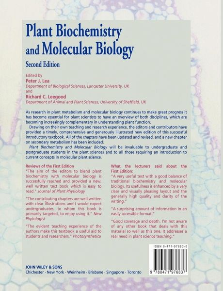 Da die Erforschung des pflanzlichen Stoffwechsels und der Molekularbiologie ständig neue Fortschritte macht, ist es für Pflanzenforscher von größter Bedeutung, sich in beiden Disziplinen einen guten Überblick zu verschaffen. Basierend auf ihrer eigenen Lehr- und Forschungserfahrung, haben die Autoren mit diesem aktuellen Werk eine umfangreiche und großzügig illustrierte Neuauflage des sehr erfolgreichen Einführungsbandes über Pflanzenchemie und Molekularbiologie geschaffen. (06/98) Plant Biochemistry and Molecular Biology Second Edition Edited by Peter J. Lea Department of Biological Sciences, Lancaster University, UK and Richard C. Leegood Department of Animal and Plant Sciences, University of Sheffield, UK As research in plant metabolism and molecular biology continues to make great progress it has become essential for plant scientists to have an overview of both disciplines, which are becoming increasingly complementary in understanding plant function. Drawing on their own teaching and research experience, the editors and contributors have provided a timely, comprehensive and generously illustrated new edition of this successful introductory textbook. All of the chapters have been updated and revised, and a new chapter on secondary metabolism has been included. Plant Biochemistry and Molecular Biology will be invaluable to undergraduate and postgraduate students in the plant sciences and to all those requiring an introduction to current concepts in molecular plant science. Reviews of the First Edition "The aim of the editors to blend plant biochemistry with molecular biology is successfully reached and provided a new, well written text book which is easy to read." Journal of Plant Physiology "The contributing chapters are well written with clear illustrations and I would expect undergraduates, to whom this book is primarily targeted, to enjoy using it." New Phytologist "The evident teaching experience of the authors make this textbook a useful aid to students and researchers." Photosynthetica What the lecturers said about the First Edition: "A very useful text with a good balance of traditional biochemistry and molecular biology. Its usefulness is enhanced by a very clear and visually pleasing layout and the generally high quality and clarity of the writing." "A surprising amount of information in an easily accessible format." "Good coverage and depth. I m not aware of any other book that deals with this material so well as this one. It addresses a real need in plant science teaching."