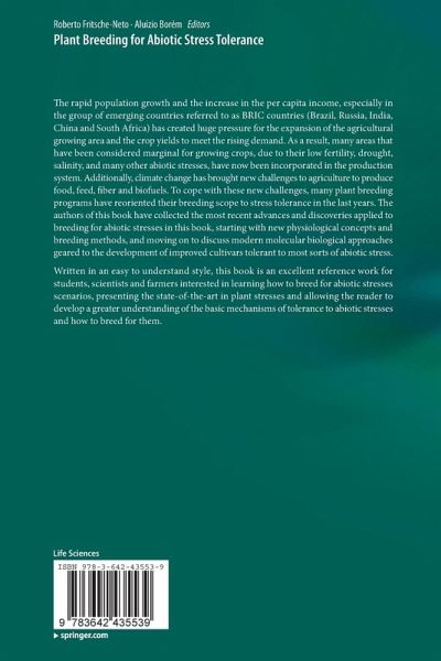 The rapid population growth and the increase in the per capita income, especially in the group of emerging countries referred to as BRIC countries (Brazil, Russia, India, China and South Africa) has created huge pressure for the expansion of the agricultural growing area and the crop yields to meet the rising demand. As a result, many areas that have been considered marginal for growing crops, due to their low fertility, drought, salinity, and many other abiotic stresses, have now been incorporated in the production system. Additionally, climate change has brought new challenges to agriculture to produce food, feed, fiber and biofuels. To cope with these new challenges, many plant breeding programs have reoriented their breeding scope to stress tolerance in the last years. The authors of this book have collected the most recent advances and discoveries applied to breeding for abiotic stresses in this book, starting with new physiological concepts and breeding methods, and moving onto discuss modern molecular biological approaches geared to the development of improved cultivars tolerant to most sorts of abiotic stress.