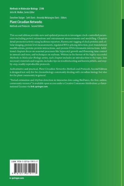 Authoritative and practical, Plant Circadian Networks: Methods and Protocols, Second Edition is designed not only for the chronobiology community dealing with circadian biology but also for the plant community in general.