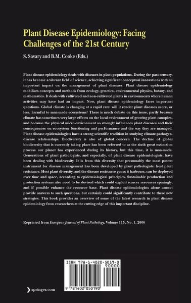 Plant disease epidemiologists have a strong scientific tradition in studying climate-pathogen-disease relationships. Biodiversity is also of global concern. The decline of global biodiversity that is currently taking place has been referred to as the sixth great extinction process our planet has experienced during its history, but this time, it is man-made. Generations of plant pathologists, and especially, of plant disease epidemiologists, have been dealing with biodiversity. It is from this diversity that presumably the most potent instrument for disease management has been developed by plant pathologists: host plant resistance. Host plant diversity, and the disease resistance genes it harbours, can be deployed over time and space, according to epidemiological principles. Sustainable production and protection systems also need to be devised which could exploit scarcer resources sparingly, and if possible enhance the resource base. Plant disease epidemiologists alone cannot provide answers to such questions, but certainly could significantly contribute to these new strategies. This book provides an overview of some of the latest research in plant disease epidemiology from researchers at the cutting edge of this important discipline.