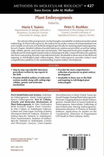 "I wish to recommend ... 'Plant Embryogenesis' edited by M.F. Suárez and P.V. Bozhkov. ... we can whole-heartedly express our thanks to all authors - leading experts in the field of plant embryology for very useful book. ... The authors aim this book primarily at researchers who are relatively new to the field of plant embryology. ... this volume will be very useful text in all laboratories dealing with plant development and embryology. It can inspire students as well as full-fledged plant embryologists." (Z. Vondráková, Biologia Plantarum, Vol. 52 (2), 2008)