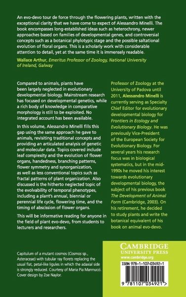 Compared to animals, plants have been largely neglected in evolutionary developmental biology. Mainstream research has focused on developmental genetics, while a rich body of knowledge in comparative morphology is still to be exploited. No integrated account is available. In this volume, Minelli fills this gap using the same approach he gave to animals, revisiting traditional concepts and providing an articulated analysis of genetic and molecular data. Topics covered include leaf complexity and the evolution of flower organs, handedness, branching patterns, flower symmetry and synorganization, and less conventional topics such as fractal patterns of plant organization. Also discussed is the hitherto neglected topic of the evolvability of temporal phenotypes like a plant's annual, biennial or perennial life cycle, flowering time and the timing of abscission of flower organs. This will be informative reading for anyone in the field of plant evo-devo, from students to lecturers and researchers.