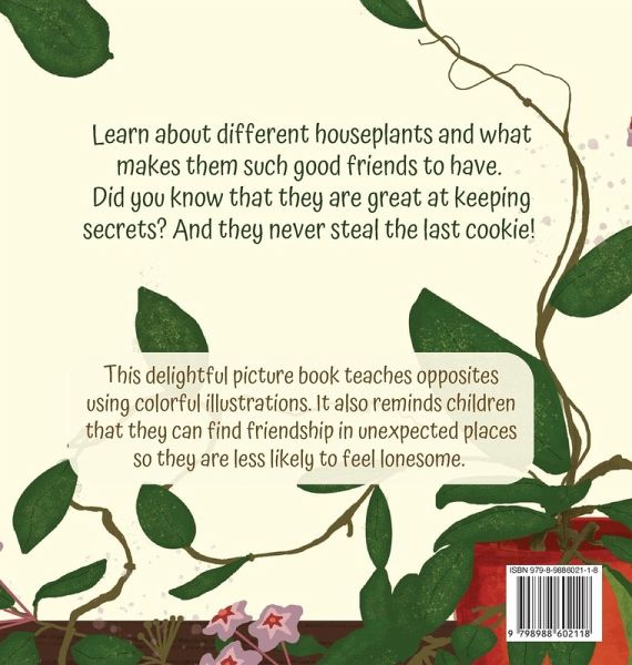 Learn about different houseplants and what makes them such good friends to have. Did you know that they are great at keeping secrets? And they never steal the last cookie! Features: - [CHILDREN'S BOOK ABOUT PLANTS AND FRIENDSHIP] Plant Friends is a children's book that teaches young readers the importance of nurturing plants and the value of having friends, regardless of their shape or size. - [OPPOSITES] The book uses plants to teach young children about opposites, such as big and small, up and down, and soft and prickly, helping them to develop their language and cognitive skills. The vivid illustrations make it easy for children to understand and learn these concepts. - [FRIENDSHIP] Plant Friends shows children that they can find friends in unexpected ways. Plant Friends is a heartwarming children's book that is perfect for any young reader who loves plants and wants to learn about friendship. It teaches opposites using colorful illustrations. It also reminds children that they can find friendship in unexpected places, making them less likely to feel lonely. Attention Parents: The back has care instructions for each plant featured in the book! description