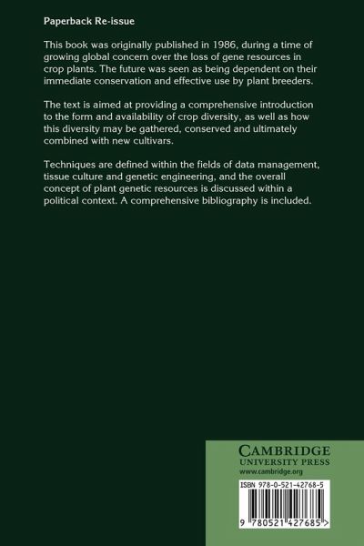 This book was originally published in paperback in 1991, during a time of growing global concern over the loss of gene resources in crop plants. The future was seen as being dependent on their immediate conservation and effective use by plant breeders. The text is aimed at providing a comprehensive introduction to the form and availability of crop diversity, as well as how this diversity may be gathered, conserved and ultimately combined with new cultivars. Techniques are defined within the fields of data management, tissue culture and genetic engineering, and the overall concept of plant genetic resources is discussed within a political context. A comprehensive bibliography is included.