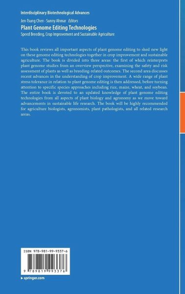 Chapter 1.Plant Genome Editing Technologies: An Updated Overview.- Chapter 2.Biosafety and Risk Assessment of Plant Genome Editing Technologies.- Chapter 3.Plant Breeding.- Chapter 4.Genome Editing Technologies in Plant Breeding.- Chapter 5.Crop Improvement.- Chapter 6.Plant Genome Editing Technologies for Crop Improvement.- Chapter 7.Plant Stress Tolerance.- Chapter 8.Plant Genome Editing Technologies for Improving Plant Stress Tolerance.- Chapter 9.CRISPR-based Genome Editing Technology in Plants.- Chapter 10.The application of Genome Editing Technologies in Rice.- Chapter 11.The application of Genome Editing Technologies in Maize.- Chapter 12.The application of Genome Editing Technologies in Wheat.- Chapter 13.The application of Genome Editing Technologies in Soybean.- Chapter 14.Plant Genome Editing Technologies: Conclusion.