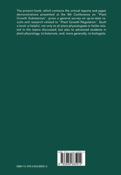 I. The Wall of Growing Cells.- 1. The Molecular Structure of the Primary Cell Wall and Elongation Growth.- 2. Cellulose Metabolism and Cell Growth.- 3. Wall Extensibility in Relation to Auxin Effects.- II. Hormones - Membranes.- 4. Membrane-Bound Auxin Receptors: Solubilization and Characterization.- 5. Auxin Hormone-Plasma Membrane Interactions.- 6. Interactions Between Indole-3-Acetic Acid and Phospholipids in Deuterochloroform as Determined by 1H, 13C, and 31P NMR Spectrometry.- 7. Physiologic Implications of the Hormonal Control of Ion Transport in Plants.- III. Hormone Analysis.- 8. The Application of High Performance Liquid Chromatography to the Analysis of Plant Hormones.- 9. Gas Chromatographic Identification and Quantitative Estimation of Natural Auxins in Developing Plant Organs.- IV. Auxins and Root Growth Inhibitors.- 10. Interactions in Translocation of Growth Regulators in Shoots with Special Reference to Auxin Transport as Affected by Two Inhibitors, a Morphactin and Lycoricidinol.- 11. Auxins and the Regulation of Root Growth.- 12. Root Growth Inhibitors.- 13. Growth Inhibitors in Growing and Geostimulated Maize Roots.- V. Gibberellins and Cytokinins.- 14. Some Aspects of Gibberellin Metabolism in Higher Plants.- 15. Cytokinin-Binding Proteins in Higher Plants.- 16. Cytokinin Relations in the Whole Plant.- 17. Cytokinin and Cell Metabolism.- VI. Ethylene and Other Regulators.- 18. Auxin and Ethylene and the Control of Cell Growth. Identification of Three Classes of Target Cells.- 19. On the Role of Ethylene in Aging.- 20. Phenolic Substances and Their Possible Role in Plant Growth Regulation.- 21. Some effects of Dikegulac on the Physiology of Whole Plants and Tissues; Interactions with Plant Hormones.- VII. Gravity and Light Effects.- 22. GeotropicResponse Mechanism in Root and Shoots.- 23. Ultrastructural Aspects of Georeceptors in Roots.- 24. Hormonal Regulation of Phototropism in Dicotyledonous Seedlings.- 25. Light, Rhythmus, and the Problem of Florigen.- VIII. Hormonal Control.- 26. The Hormonal Regulation of the Cell Division Cycle.- 27. Hormonal Controls of Abscission: Biochemical and Ultrastructural Aspects.- 28. Hormonal Regulators of Plant Flowering.- 29. Hormonal Relationships in Whole Plant Senescence.- 30. Growth Substances and Protoplasts.- IX. Paper Demonstrations.