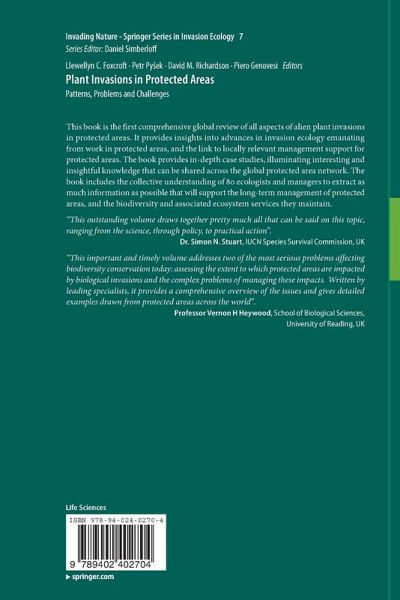 This book is the first comprehensive global review of all aspects of alien plant invasions in protected areas. It provides insights into advances in invasion ecology emanating from work in protected areas, and the link to locally relevant management support for protected areas. The book provides in-depth case studies, illuminating interesting and insightful knowledge that can be shared across the global protected area network. The book includes the collective understanding of 80 ecologists and managers to extract as much information as possible that will support the long-term management of protected areas, and the biodiversity and associated ecosystem services they maintain.