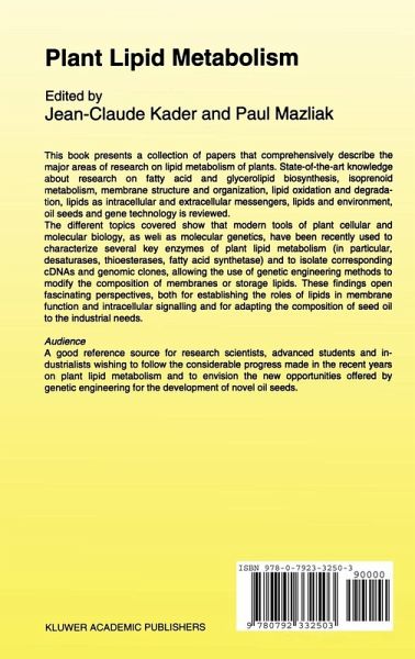 A collection of papers that comprehensively describe the major areas of research on lipid metabolism of plants. State-of-the-art knowledge about research on fatty acid and glycerolipid biosynthesis, isoprenoid metabolism, membrane structure and organization, lipid oxidation and degradation, lipids as intracellular and extracellular messengers, lipids and environment, oil seeds and gene technology is reviewed.