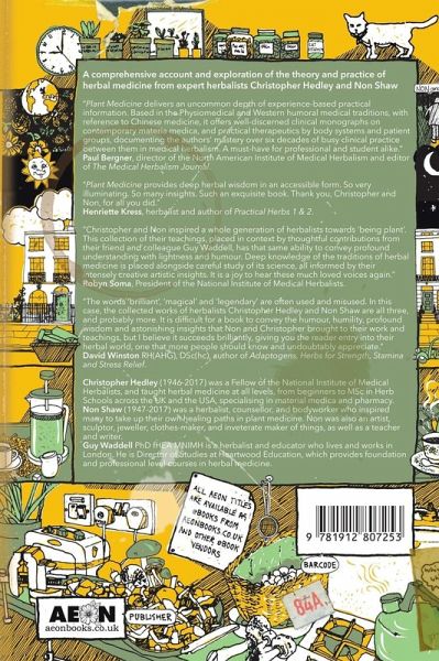 Christopher Hedley (1946-2017) was a Fellow of the National Institute of Medical Herbalists, and taught herbal medicine at all levels, from beginners to MSc in Herb Schools across the UK and the USA, specialising in material medica and pharmacy. Non Shaw (1947-2017) was a  herbalist, counsellor, and bodyworker who inspired many to take up their own healing paths in plant medicine, Non was an artist, sculptor, jeweller, clothes-maker, and inveterate maker of things. She was also a teacher and writer. Guy Waddell PhD fHEA MNIMH is a herbalist and educator who lives and works in London. He is Director of Studies at Heartwood Education, which provides foundation and professional level courses in herbal medicine. Previously, he was a lecturer in herbal medicine in the Department of Life Sciences at the University of Westminster. He has authored The Enchantment of Western Herbal Medicine: herbalists, plants and nonhuman agency (Aeon Books, 2020). He has a particular interest in how humans and plants know each other and what may come of this.