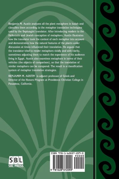 In this study Benjamin M. Austin analyzes all the plant metaphors in Isaiah and classifies them according to the metaphor translation techniques used by the Septuagint translator. He shows how the translator took the context of each metaphor into account and that the natural features of the plants under discussion at times influences their translation. Austin argues that the translator tried to translate metaphors vividly and with clarity, sometimes adjusting them to match the experience of his audience living in Egypt. Austin examines metaphors by their vehicles, so that the translation of similar metaphors can be compared.