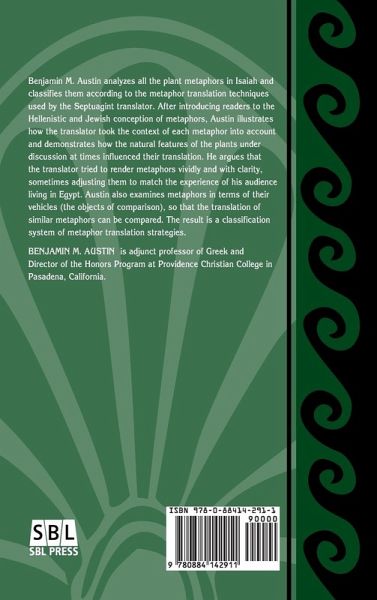 In this study Benjamin M. Austin analyzes all the plant metaphors in Isaiah and classifies them according to the metaphor translation techniques used by the Septuagint translator. He shows how the translator took the context of each metaphor into account and that the natural features of the plants under discussion at times influences their translation. Austin argues that the translator tried to translate metaphors vividly and with clarity, sometimes adjusting them to match the experience of his audience living in Egypt. Austin examines metaphors by their vehicles, so that the translation of similar metaphors can be compared.