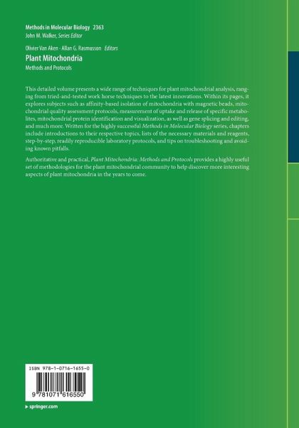 This detailed volume presents a wide range of techniques for plant mitochondrial analysis, ranging from tried-and-tested work horse techniques to the latest innovations. Within its pages, it explores subjects such as affinity-based isolation of mitochondria with magnetic beads, mitochondrial quality assessment protocols, measurement of uptake and release of specific metabolites, mitochondrial protein identification and visualization, as well as gene splicing and editing, and much more. Written for the highly successful Methods in Molecular Biology series, chapters include introductions to their respective topics, lists of the necessary materials and reagents, step-by-step, readily reproducible laboratory protocols, and tips on troubleshooting and avoiding known pitfalls.