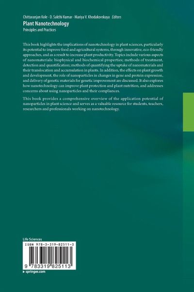 Plant Nanotechnology: An Overview on Concepts, Strategies and Tools.- Physical and Chemical Nature of Nanoparticles.- Biophysical Methods of Detection and Quantification of Uptake, Translocation and Accumulation of Nanoparticles.- Methods of Using Nanoparticles.- Effects of Nanoparticles on Plant Growth and Development.- Effect of Nanoparticles on Plants with Regard to Physiological Attributes.- Molecular Mechanism of Plant-Nanoparticle Interactions.- Uptake, Translocation, Accumulation, Transformation and Generational Transmission of Nanoparticles in Plants.- Nanotechnology for Crop Improvement.- Role of Nanoparticles for Delivery of Genetic Material.- Agri-nano techniques for Plant availability of Nutrients.- Utilization of Nanoparticles for Plant Protection.- Nanotechnology in Soil-Plant System.- Concerns of Nanoparticle Hazard to Human Health and Environment.- Future Roadmap for Plant Nanotechnology.
