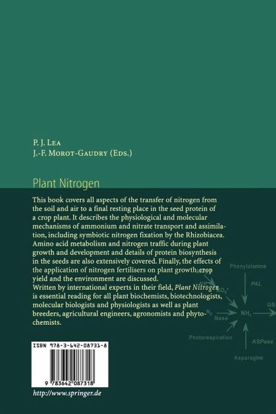 This book covers all aspects of the transfer of nitrogen from the soil and air to a final resting place in the seed protein of a crop plant. It describes the physiological and molecular mechanisms of ammonium and nitrate transport and assimilation, including symbiotic nitrogen fixation by the Rhizobiacea. Amino acid metabolism and nitrogen traffic during plant growth and development and details of protein biosynthesis in the seeds are also extensively covered. Finally, the effects of the application of nitrogen fertilisers on plant growth, crop yield and the environment are discussed.
