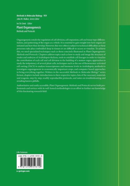 Organogenesis entails the regulation of cell division, cell expansion, cell and tissue type differentiation, and patterning of the organ as a whole. It is essential to gain insight into how organs are initiated and how they develop. However, this very often is subject to technical difficulties as these processes take place embedded deep in tissues or are difficult to access or visualize. To achieve this, we need specialized techniques such as those concisely illustrated in Plant Organogenesis: Methods and Protocols. Chapters address topics such as how to study and image the structure of ovules and embryos of Arabidopsis thaliana, tools to establish cell lineages in order to visualize the contribution of each cell and cell division to the building of a mature organ, approaches to study the totipotency of several plant cells, techniques such as the use of fluorescence-activated cell sorting (FACS) to analyse transcriptomes and hormone levels in Arabidopsis, methods to investigate organogenesis in economically important crops, and computer-based approaches to bring everything together. Written in the successful Methods in Molecular Biology(TM) series format, chapters include introductions to their respective topics, lists of the necessary materials and reagents, step-by-step, readily reproducible protocols, and notes on troubleshooting and avoiding known pitfalls.