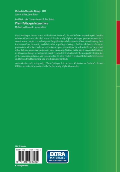 Galaxy as a Platform for Identifying Candidate Pathogen Effectors.- Bioinformatic analysis of expression data to identify effector candidates.- Two-dimensional data binning for the analysis of genome architecture in filamentous plant pathogens and other eukaryotes.- On The Statistics Of Identifying Candidate Pathogen Effectors.- High-throughput imaging of plant immune responses.- In vivo protein-protein interaction studies with BiFC: conditions, cautions and caveats.- Particle bombardment-mediated transient expression to identify localization signals in plant disease resistance proteins and target sites for the proteolytic activity of pathogen effectors.- Purification of fungal haustoria from infected plant tissue by flow cytometry.- Functional Characterisation of Nematode Effectors in Plants.- Silencing of aphid genes by feeding on stable transgenic Arabidopsis thaliana.- Leaf-disc assay based on transient over-expression in Nicotiana benthamiana to allow functional screening of candidate effectors from aphids.- A growth quantification assay for Hyaloperonospora arabidopsidis isolates in Arabidopsis thaliana.- Simple quantification of in planta fungal biomass.- Virus-induced gene silencing and Agrobacterium tumefaciens-mediated transient expression in Nicotiana tabacum.- DIGE-ABPP by click chemistry: Pairwise comparison of serine hydrolase activities from the apoplast of infected plants.- A Simple and Fast Protocol for the Protein Complex Immunoprecipitation (Co-IP) of Effector - Host Protein Complexes.- An Arabidopsis and Tomato Mesophyll Protoplast System for fast Identification of early MAMP-triggered Immunity-Suppressing Effectors.- Production of RXLR effector proteins for structural analysis by X-ray crystallography.- The Do's and Don'ts of effectoromics.- Protoplast cell death assay to study Magnaporthe oryzae AVR gene function in rice.- A Bacterial Type III Secretion Based Delivery System for Functional Assays of Fungal Effectors in Cereals.-Capture arrays to annotate resistance genes in plant genomes and to accelerate plant resistance gene discovery.