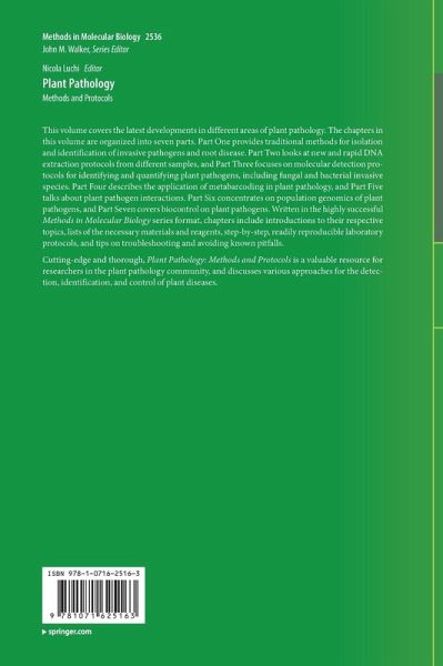 Cutting-edge and thorough, Plant Pathology: Methods and Protocols is a valuable resource for researchers in the plant pathology community, and discusses various approaches for the detection, identification, and control of plant diseases.