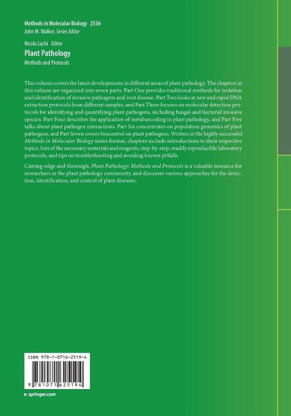 This volume covers the latest developments in different areas of plant pathology. The chapters in this volume are organized into seven parts. Part One provides traditional methods for isolation and identification of invasive pathogens and root disease. Part Two looks at new and rapid DNA extraction protocols from different samples, and Part Three focuses on molecular detection protocols for identifying and quantifying plant pathogens, including fungal and bacterial invasive species. Part Four describes the application of metabarcoding in plant pathology, and Part Five talks about plant pathogen interactions. Part Six concentrates on population genomics of plant pathogens, and Part Seven covers biocontrol on plant pathogens. Written in the highly successful Methods in Molecular Biology series format, chapters include introductions to their respective topics, lists of the necessary materials and reagents, step-by-step, readily reproducible laboratory protocols, and tips on troubleshooting and avoiding known pitfalls.