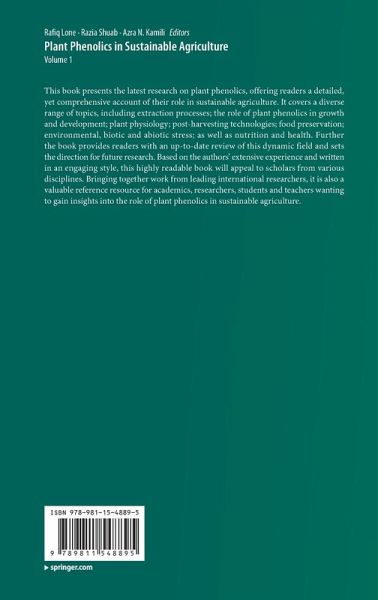 Chapter 1. Salicylic acid-mediated salt stress tolerance in plants.- Chapter 2. Biotechnology for Extraction of Plant Phenolics.- Chapter 3. Exploitation of Plant Phenolics in Animal Farming.- Chapter 4. FLAVONES AND FLAVONOLS: BIOACTIVITIES AND RESPONSES UNDER LIGHT STRESS IN HERBS.- Chapter 5. Interactive Biology of Auxins and Phenolics in Plant Environment.- Chapter 6. Bioavailability and Nutritional analysis of Flavonoids.- Chapter 7. Newly Identified Phenolic Compounds from Different Plant Families.- Chapter 8. Phenolic alleochemicals from crops and weed management.- Chapter 9. Phenolic Compounds against Fungal and Viral Plant Diseases.- Chapter 10. Phenolic compounds from medicinal herbs: their role in animal health and diseases: A new approach for sustainable welfare and development.- Chapter 11. Phenolics- A game changer in the life cycle of plants.- Chapter 12. Phenolics as plant protective companion against abiotic stress.- Chapter 13. Phenolics: A key defence SecondaryMetabolite to Counter Biotic Stress.- Chapter 14. Phenolics From Agro-Industrial By-Products.- Chapter 15. Plant Phenolics and Post Harvesting Technologies.- Chapter 16. Plant Phenolics as Natural Preservatives in Food System.- Chapter 17. Plant phenolics for overcoming multidrug resistance in human fungal pathogen.- Chapter 18. Plant Phenolics: their biosynthesis, regulation, evolutionary significance and role in Senescence.- Chapter 19. Plant phenolics under water deficit conditions: Biosynthesis, accumulation and physiological roles in water stress alleviation.- Chapter 20. Plants as Biofactories for Phenolic Compounds.- Chapter 21. QUANTITATIVE GENETICS AND THE GENETIC BASIS FOR POLYPHENOLICS TRAIT IN PLANTS.- Chapter 22. Role of Phenolic Compounds in Plant Defensive Mechanisms.- Chapter 23. Role of Salicylic Acid in Biotic and Aboitic Stress Tolerance in Plants.- Chapter 24. Root Phenolics Profile Modulates Microbial Ecology of Rhizosphere.- Chapter 25. Defensive role of plant phenolics against pathogenic microbes for sustainable agriculture.