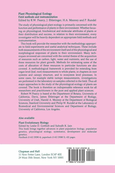 Physiological plant ecology is primarily concerned with the function and performance of plants in their environment. Within this broad focus, attempts are made on one hand to understand the underlying physiological, biochemical and molecular attributes of plants with respect to performance under the constraints imposed by the environment. On the other hand physiological ecology is also concerned with a more synthetic view which attempts to under stand the distribution and success of plants measured in terms of the factors that promote long-term survival and reproduction in the environment.…mehr