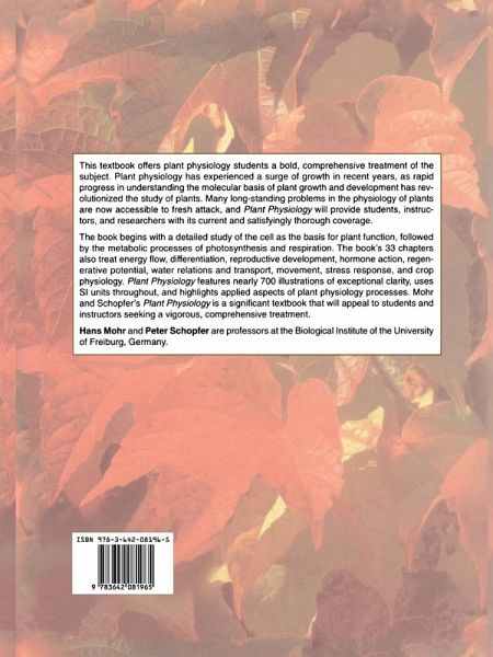 In this comprehensive and stimulating text and reference, the authors have succeeded in combining experimental data with current hypotheses and theories to explain the complex physiological functions of plants. For every student, teacher and researcher in the plant sciences it offers a solid basis for an in-depth understanding of the entire subject area, underpinning up-to-date research in plant physiology. The authors vividly explain current research by references to experiments, they cite original literature in figures and tables, and, at the end of each chapter, list recent references that are relevant for a deeper analysis of the topic. In addition, an abundance of detailed and informative illustrations complement the text.