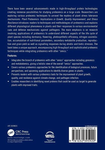 Features: Integrates the branch of proteomics with other "omics" approaches including genomics and metabolomics, giving a holistic view of the overall "omics" approachesCovers various proteomics approaches for the identification of biological processes, future perspectives, and upcoming applications to identify diverse genes in plantsPresents readers with various proteomics tools for the improvement of plant growth, quality, and resilience against climate change, and pathogen infectionEnables researchers in identifying novel proteins that could be used as target to generate plants with improved traits