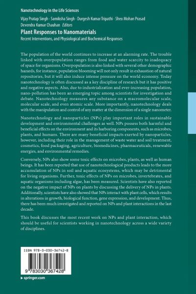 Nanotechnologyand nanoparticles (NPs) play important roles in sustainable development and environmental challenges as well. NPs possess both harmful and beneficial effects on the environment and its harboring components, such as microbes, plants, and humans. There are many beneficial impacts exerted by nanoparticles, however, including their role in the management of waste water and soil treatment, cosmetics, food packaging, agriculture, biomedicines, pharmaceuticals, renewable energies, and environmental remedies. Conversely, NPs also show some toxic effects on microbes, plants, as well as human beings. It has been reported that use of nanotechnological products leads to the more accumulation of NPs in soil and aquatic ecosystems, which may be detrimental for living organisms. Further, toxic effects of NPs on microbes, invertebrates, and aquatic organisms including algae, has been measured. Scientists have also reported on the negative impact of NPson plants by discussing the delivery of NPs in plants. Additionally, scientists have also showed that NPs interact with plant cells, which results in alterations in growth, biological function, gene expression, and development. Thus, there has been much investigated and reported on NPs and plant interactions in the last decade. This book discusses the most recent work on NPs and plant interaction, which should be useful for scientists working in nanotechnology across a wide variety of disciplines.