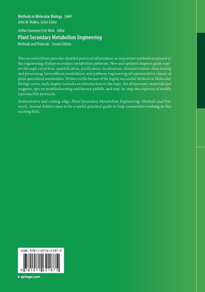 Authoritative and cutting-edge, Plant Secondary Metabolism Engineering: Methods and Protocols, Second Edition aims to be a useful practical guide to help researchers working in this exciting field.