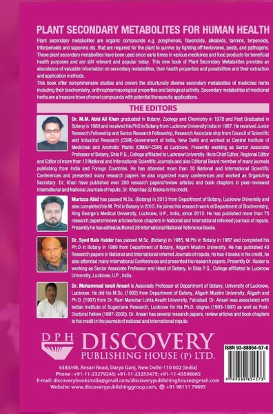 Plant secondary metabolites are organic compounds e.g. polyphenols, flavonoids, alkaloids, tannins, terpenoids, triterpenoids and saponins etc. that are required for the plant to survive by fighting off herbivores, pests, and pathogens. These plant secondary metabolites have been used since early times in various medicines and food products for beneficial health purposes and are still relevant and popular today. This new book of Plant Secondary Metabolites provides an abundance of valuable information on secondary metabolites, their health properties and possibilities and their extraction and application methods.This book offer comprehensive studies and covers the structurally diverse secondary metabolites of medicinal herbs including their biochemistry, enthnopharmacological properties and biological activity.