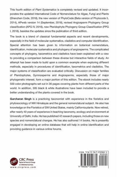 This fourth edition of Plant Systematics is completely revised and updated. It incorporates the updated International Code of Nomenclature for Algae, Fungi and Plants (Shenzhen Code, 2018), the new version of PhyloCode (Beta version of Phylocode 5, 2014), APweb version 14 (September, 2018), revised Angiosperm Phylogeny Group classification (APG IV, 2016), new Pteridophyte Phylogeny Group Classification (PPG I, 2016), besides the updates since the publication of third edition. The book is a blend of classical fundamental aspects and recent developments, especially in the field of molecular systematics, cladistics and computer identification. Special attention has been given to information on botanical nomenclature, identification, molecular systematics and phylogeny of angiosperms. The complicated concepts of phylogeny, taxometrics and cladistics have been explained with a view to providing a comparison between these diverse but interactive fields of study. An attempt has been made to build upon a common example when exploring different methods, especially in procedures of identification, taxometrics and cladistics. The major systems of classification are evaluated critically. Discussion on major families of Pteridophytes, Gymnosperms and Angiosperms, especially those of major phylogenetic interest, form a major portion of this edition. The ebook includes nearly 500 color photographs set out in 36 pages covering plants from different parts of the world. In addition, 305 black & white illustrations have been included to provide a better understanding of the plants covered in the book.