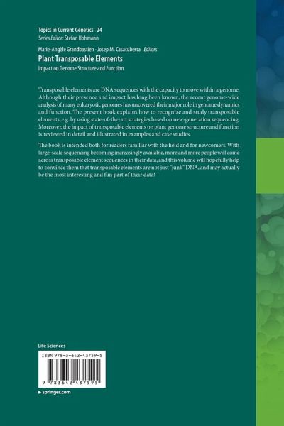 Transposable elements are short lengths of DNA with the capacity to move between different points within a genome. This process can affect the function of genes at or near the insertion site. The present book gives an overview of the impact of transposable elements on plant genomes and explains how to recognize and study transposable elements, e.g. by using state-of-the-art strategies like "new generation sequencing." Moreover, the impact of transposable elements on plant genome structure and function is reviewed in detail, and also illustrated in examples and case studies.The book is intended…mehr