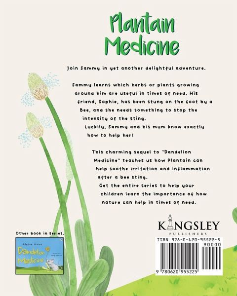 Join Sammy in yet another delightful adventure. Sammy learns which herbs or plants growing around him are useful in times of need. His friend, Sophie, has been stung on the foot by a Bee, and she needs something to stop the intensity of the sting. Luckily, Sammy and his mum know exactly how to help her! This charming sequel to "Dandelion Medicine" teaches us how Plantain can help soothe irritation and inflammation after a bee sting.Get the entire series to help your children learn the importance of how nature can help in times of need.