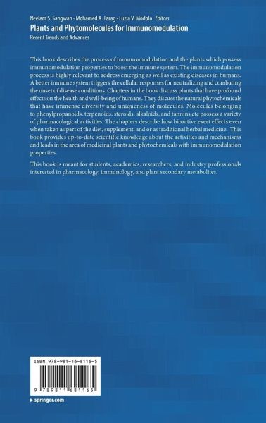 Chapter 1. Immune system and mechanism of Immuno-modulation.- Chapter 2. Insights into the modulation of immune response, chemistry, and mechanisms of action of immuno-modulatory phytomolecules.- Chapter 3. Bioprospection and Clinical Investigations of Immunomodulatory Molecules.- Chapter 4. Pathway and genomics of immunomodulator natural products.- Chapter 5. Phytomolecules and metabolomics of immunomodulation - Recent Trends and Advances.- Chapter 6. Knowledge of African Traditional Medicine System: Immunomodulation.- Chapter 7. Middle Eastern diets as a potential source of immunomodulators.- Chapter 8. Immuno-Stimulant Properties of Some Commonly Used Indian Spices and Herbs with Special Reference to Region Specific Cuisines.- Chapter 9. Traditional Indian Knowledge of immunity from plants.- Chapter 10. Select Global Immune-Boosting Plants Used in Folklore Medicine.- Chapter 11. Immunomodulatory role of terpenoidsand phytosteroids.- Chapter 12. Rhizomatous Plants - Curcuma longa and Zingiber officinale in affording immunity.- Chapter 13. Fruits as Boosters of Immune System.- Chapter 14. Solanaceous Plants for Immunomodulation.- Chapter 15. Food and vegetables as source of phytoactives for immunomodulation.- Chapter 16. Immunomodulation potential of woody plants.- Chapter 17. Biotechnological approaches for the production of immunomodulating phytomolecules.- Chapter 18. Technological mapping of plant-derived immunomodulator drugs: A patent-guided overview about species and its main compounds.