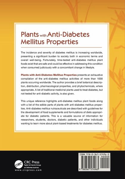 The incidence and severity of diabetes mellitus is increasing worldwide, presenting a significant burden to society both in economic terms and overall well-being. Fortunately, time-tested anti-diabetes mellitus plant foods exist that are safe and could be effective in addressing this condition when consumed judiciously with a concomitant change in lifestyle. Plants with Anti-Diabetes Mellitus Properties presents an exhaustive compilation of the anti-diabetes mellitus activities of more than 1000 plants occurring worldwide. The author provides a brief botanical description, distribution, pharmacological properties, and phytochemicals, where appropriate. A list of traditional medicinal plants used to treat diabetes, but not tested for anti-diabetic activity, is also given. This unique reference highlights anti-diabetes mellitus plant foods along with a list of the edible parts of plants with anti-diabetes mellitus properties. Anti-diabetes mellitus nutraceuticals are described with guidelines for the development of food supplements and formulations of diets appropriate for diabetic patients. This is a valuable source of information for researchers, students, doctors, diabetic patients, and other individuals wanting to learn more about plant-based treatments for diabetes mellitus.